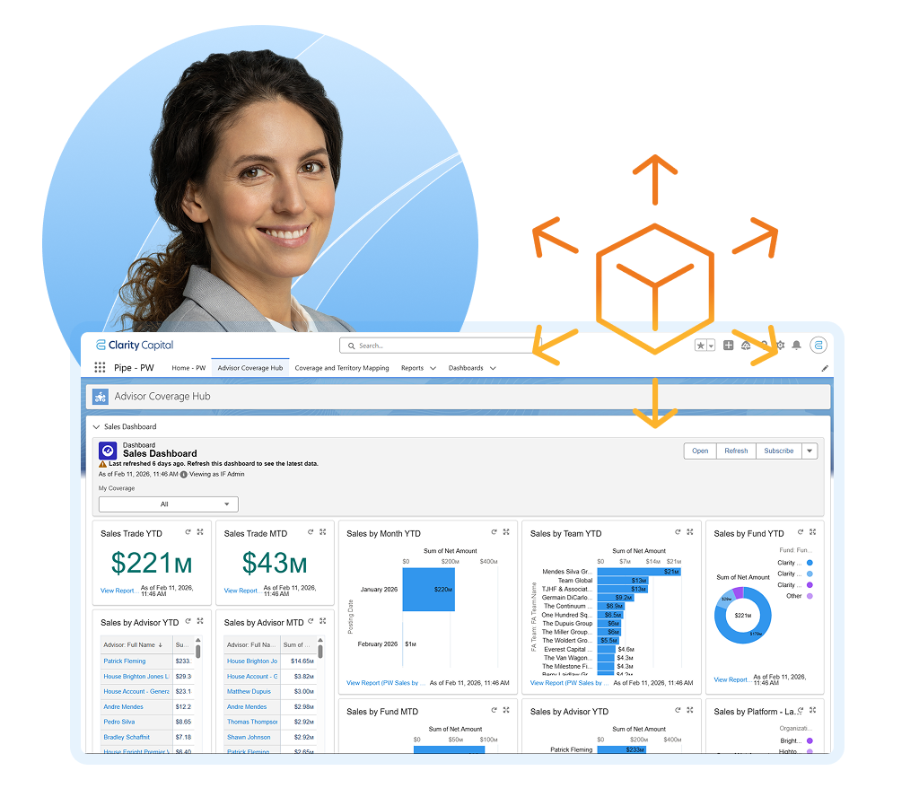 Why can’t we use our existing CRM for private wealth? Institutional CRMs model direct relationships and break down at the scale of the wealth channel — leaving teams with fragmented advisor records and no unified view of which advisors are producing.
